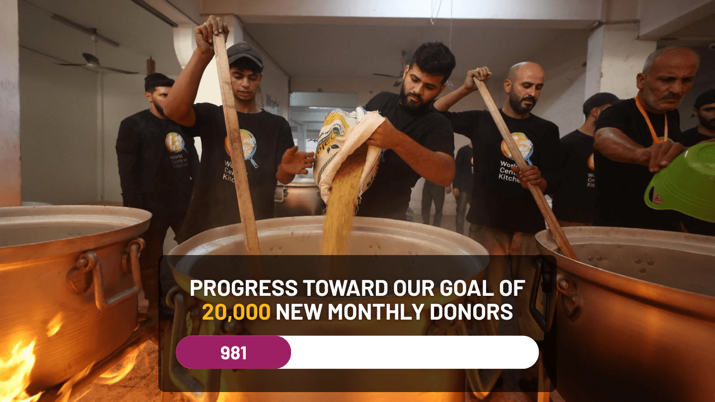 Become a monthly donor and we’ll add $50 to your first gift. This boost helps WCK move within hours to support families in Gaza.